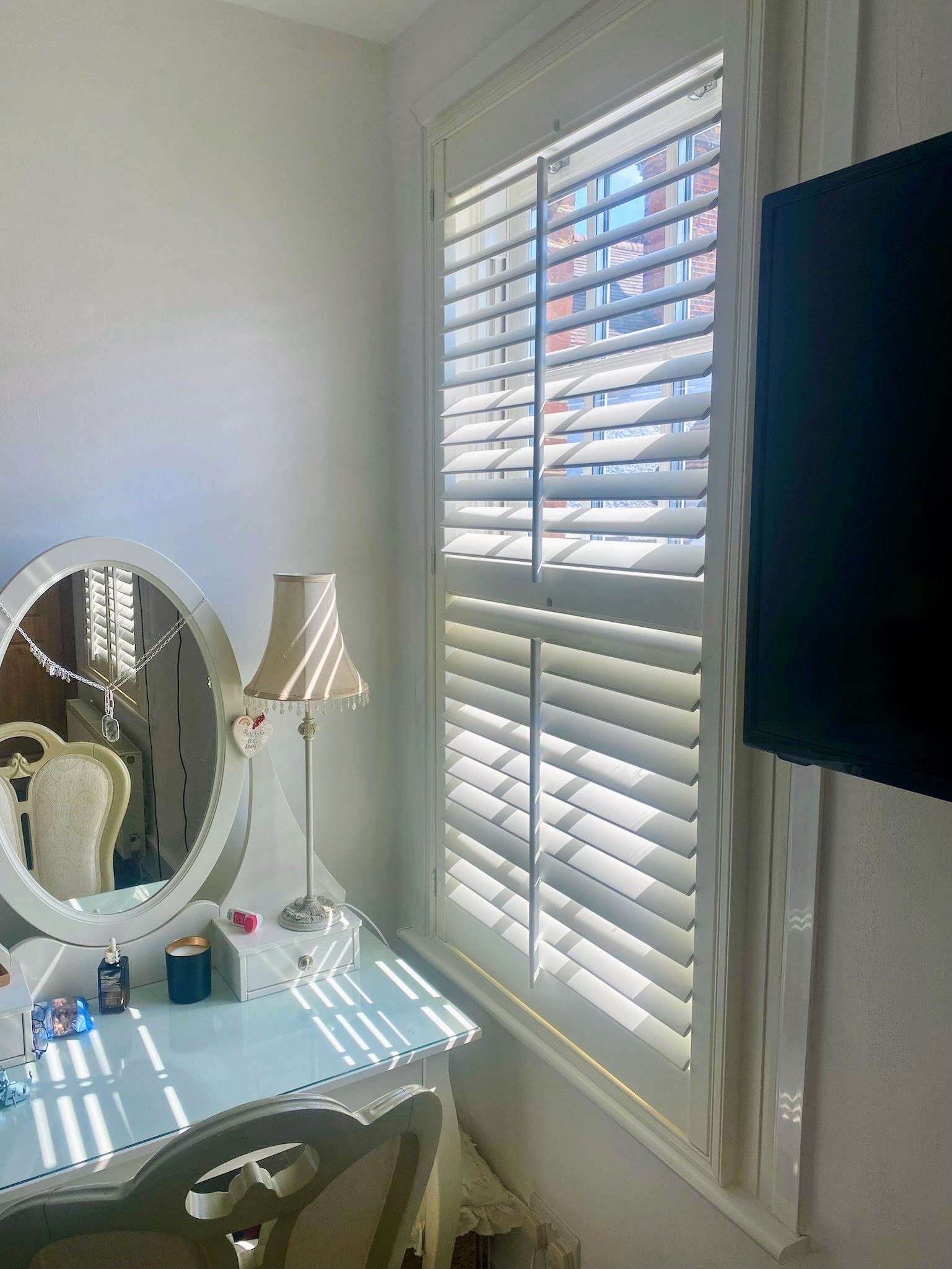 Shutters with a centre rod offer a traditional look while providing easy and uniform control over the louvres. The tilt rod runs down the middle, allowing all the louvres to move together for effortless light and privacy adjustment.